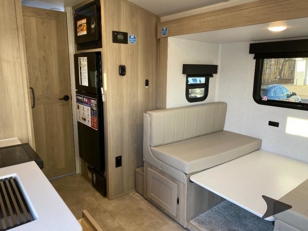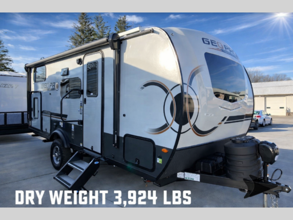 With any Rockwood GEO Pro travel trailer by Forest River you will enjoy easy towing, durable construction, and off-road capabilities with larger 15" tires and a lift kit! Each model is constructed with complete composite wall construction for added strength and durability, and the torsion axle, Rubber-Ryde suspension will make towing easier than ever. Inside, you'll find sleek roller shades for added privacy, a 12V refrigerator and a microwave, plus a 20,000 BTU furnace to keep you warm during the colder camping months.