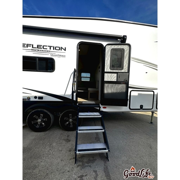 Everything you love about the Reflection and less. With floorplans starting under 7,000 pounds and 90-degree turning radius capabilities, you can tow in confidence with many of todays half-ton and short-bed trucks. Keep your truck and ditch the stress with the Reflection 150 Series. The 2025 Grand Design Reflection 150 Series 270BN is a compact and lightweight fifth wheel RV, designed for easy towing without sacrificing comfort. It features a unique mid-kitchen layout with a spacious countertop, modern appliances, and ample storage. The living area includes comfortable seating, while the master bedroom provides a queen-sized bed with wardrobe space. With its sleek design, premium finishes, and efficient use of space, the 270BN is ideal for couples or small families looking for a convenient and stylish RV for both short trips and longer adventures. The 270BN and other great Reflection 5th wheels are For Sale at Good Life RV in Webster City, IA 515-832-5715.  We offer competitive financing and do accept trades!  Give us a call today to schedule your appointment to come in and take a look!