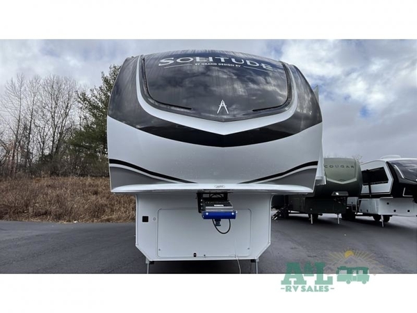 Each Solitude fifth wheel by Grand Design features a 101" wide-body construction, heavy duty 8,000 lb. axles, frameless tinted windows, and high-gloss gel coat sidewalls. You can camp year around thanks to the Weather-Tek Package that includes a 35K BTU high-capacity furnace, an all-in-one enclosed and heated utility center, and a fully enclosed underbelly with heated tanks and storage. Inside, you'll love the premium roller shades, hardwood cabinet doors, solid surface countertops, plus residential finishes throughout to make you truly feel at home. Each model also includes a MORryde CRE3000 suspension system, self adjusting brakes, and a MORryde pin box that will provide smooth towing from home to campground. Affordable luxury is possible with the Solitude fifth wheels; choose yours today!