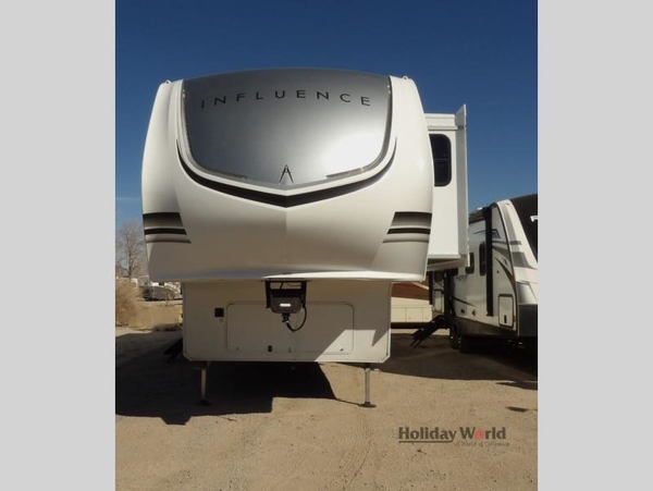 Any Grand Design Influence fifth wheel features five-sided aluminum cage construction with a walk-on roof and a fully enclosed underbelly with heated tanks and storage for all weather camping. For peace of mind, the MORryde CRE3000 Suspension system will provide safe and smooth towing, and the 101" widebody construction offers all the room you need and that is before multiple slides are fully engaged. You will appreciate the Keyed-Alike locks, slam-latch baggage doors with magnetic door catches, exterior security light, and SolidStep entry steps. On the inside, Congoleum flooring, premium roller shades for privacy, a hallway handrail for safety, and nightstands with USB ports to keep all of your electronics fully charged. You will also love the On Demand tankless water heater when showering, plus the added heat and ambiance from an electric fireplace, and so much more!