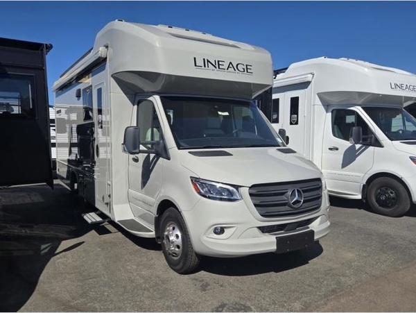 Grand Design's first motorized coach, the Lineage Series M is coming to you with luxurious features at a great value. This Class C diesel motorhome sits on a Mercedes-Benz sprinter chassis for quality and performance you can trust. True to Grand Design's foundation, the Lineage includes interior comforts, durable construction, innovative features, and attention to detail. The Series M Package includes natural teak wood grain, a Lineage Suspension Package, and more. There is also a Blackout Package with black aluminum wheels, a Chromeout Package with chrome aluminum wheels, plus additional packages to enhance your travel experience!