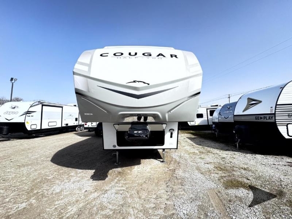 The Keystone Cougar Half-Ton fifth wheel and travel trailers are known as one of America's favorites for a reason! Some of those reasons are the exclusive features that come from Keystone, like the Winegard Air 360+ omni-directional rooftop antenna, the in-floor heating ducts, and the Hyper Deck flooring. The Cougar Half-Ton has a Climate Guard protection package to keep you safe during inclement weather, along with two roof attic vents, PEX plumbing and more. Use the 21" Furrion range with Piezo ignition to create all of those familiar meals from home, and enjoy endless hot showers with the Girard tankless on-demand water heater!