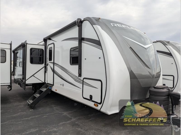 With any Reflection travel trailer by Grand Design, you will have a solar panel for off-grid camping and a 60 amp charge controller and inverter prep, a Universal All-In-One docking station, unobstructed pass-through storage, and Goodyear Endurance tires. Each is constructed of gel coat exterior sidewalls, residential 5" truss rafters, walk-on roof decking, a fiberglass and radiant foil roof and front cap insulation plus laminated aluminum framed side walls, roof and end walls in slide rooms. Head inside to enjoy residential hardwood cabinet doors, premium Congoleum flooring, a spacious shower with a glass door, and many more comforts!