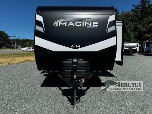 Aim for new destinations in one of these Grand Design Imagine AIM travel trailers! They are constructed to a superior standard with the 4-Seasons Protection Package that features a heated and enclosed underbelly with suspended tanks, a moisture barrier floor enclosure, a double insulated roof and front wall, and more. There is backup camera prep outside, along with a universal docking station, a power tongue jack, and durable Tuff-Ply pass-thru flooring for your camp gear. You are sure to feel at home with residential cabinetry, premium window treatments, residential countertops, and a spacious walk-in shower to name a few comforts. The on-demand tankless water heater is a feature you won't want to camp without and the hi-definition LED TV will ensure you'll never go bored on rainy days. Each model also comes with four AIM packages; the Peace of Mind Package, The Ultimate Power Package, The 4-Season Protection Package, and the Solar Package!