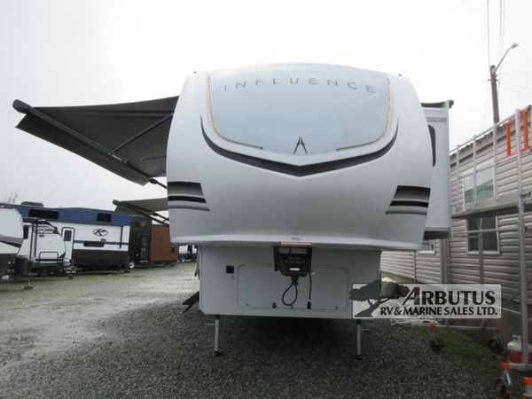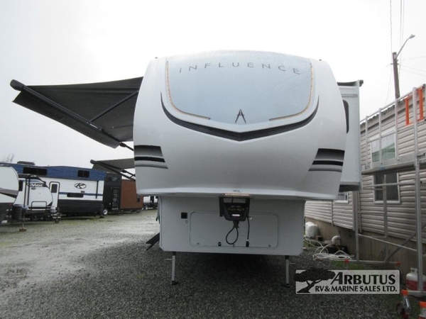 Any Grand Design Influence fifth wheel features five-sided aluminum cage construction with a walk-on roof and a fully enclosed underbelly with heated tanks and storage for all weather camping. For peace of mind, the MORryde CRE3000 Suspension system will provide safe and smooth towing, and the 101" widebody construction offers all the room you need and that is before multiple slides are fully engaged. You will appreciate the Keyed-Alike locks, slam-latch baggage doors with magnetic door catches, exterior security light, and SolidStep entry steps. On the inside, Congoleum flooring, premium roller shades for privacy, a hallway handrail for safety, and nightstands with USB ports to keep all of your electronics fully charged. You will also love the On Demand tankless water heater when showering, plus the added heat and ambiance from an electric fireplace, and so much more!