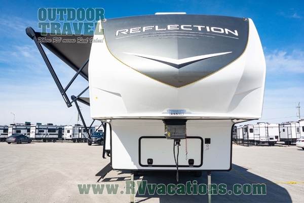 With any Reflection 150 Series fifth wheel by Grand Design, there is more available payload capacity and a broader range of half-ton trucks capable of towing this fifth wheel, and no slider hitch is needed thanks to the 90-degree turning radius which makes them short bed friendly and easier to tow. The mandatory Ultimate Power package provides a "One-Touch" automatic leveling system and a detachable power cord with LED light for easy setup, plus motion sensor pass-through lighting and entry lighting, and the Tire Linc TPMS will help you stay safe on the road. The interior offers residential luxury from the cabinetry and premium Congoleum flooring, to the booth dinette and residential-style window treatment. Make your refined decision today!