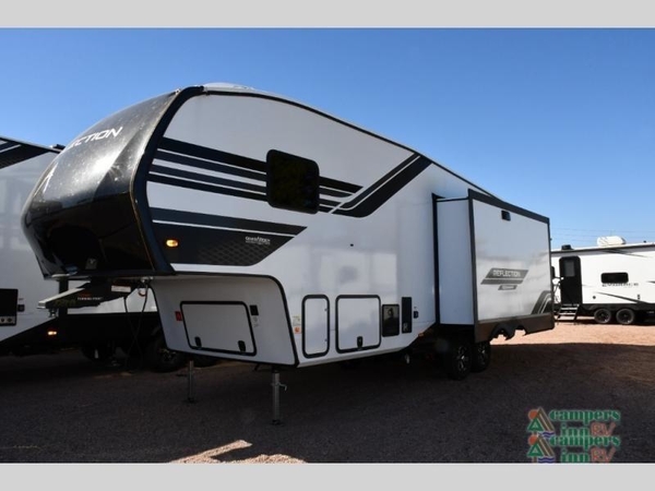 With any Reflection 150 Series fifth wheel by Grand Design, there is more available payload capacity and a broader range of half-ton trucks capable of towing this fifth wheel, and no slider hitch is needed thanks to the 90-degree turning radius which makes them short bed friendly and easier to tow. The mandatory Ultimate Power package provides a "One-Touch" automatic leveling system and a detachable power cord with LED light for easy setup, plus motion sensor pass-through lighting and entry lighting, and the Tire Linc TPMS will help you stay safe on the road. The interior offers residential luxury from the cabinetry and premium Congoleum flooring, to the booth dinette and residential-style window treatment. Make your refined decision today!