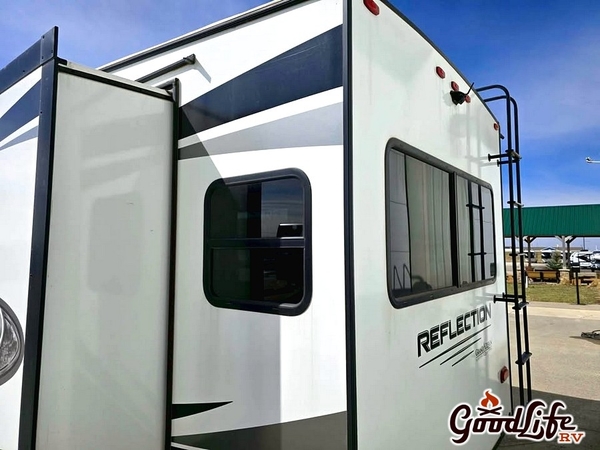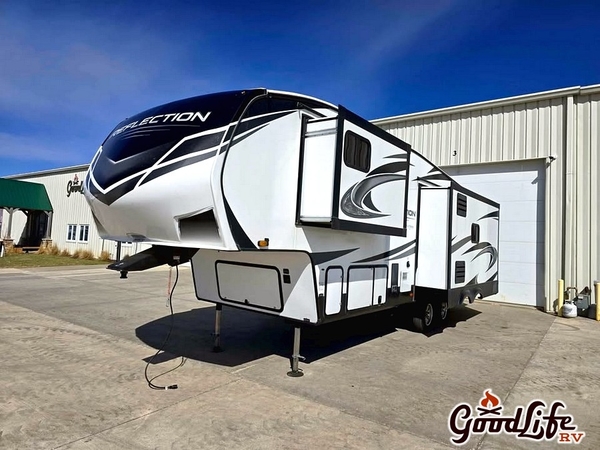 This USED 2021 Grand Design Reflection 303RLS is a luxury fifth-wheel RV designed for comfort and convenience. It features a spacious rear living area with theater seating, a tri-fold sofa, and an entertainment center with a fireplace. The kitchen includes a large island, residential-style appliances, and ample storage. The front master suite boasts a queen bed, wardrobe slide, and a full bathroom with a roomy shower. With a sturdy build, high-quality insulation, and modern amenities, the 303RLS is ideal for extended stays or full-time RV living. The 2021 Grand Design Reflection 303RLS is ideal for couples or small families looking for a high-end, reliable, and stylish fifth-wheel camper. It combines luxury and convenience, making it perfect for extended trips or full-time RV living. Whether you're parked at a scenic campsite or exploring the backcountry, this model offers a comfortable and homey retreat. For sale at Good Life RV in Webster City, IA 515-832-5715.