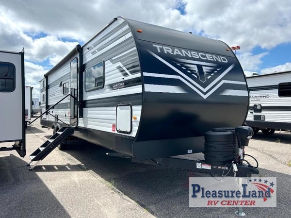 With any Transcend travel trailer by Grand Design, you will enjoy upscale appointments and convenient amenities to make each camping experience one to remember! The Quad Seal technology, residential insulated walls, plus heated and enclosed underbelly with suspended tanks make these units solid and durable. There is a black automotive glass door outside, along with a Safe-T-Rail assist on the main entry door, backup camera prep, and a universal docking station. JBL interior and exterior speakers plus a JBL head unit will let you listen to your favorite tunes as you visit under the power awning with LED strip lights. Inside, you'll enjoy multiple outlets to keep your gadgets charged, thermoformed and seamless countertops, and a 6' 6" interior height so you won't feel closed in. The Solar Prep Package will allow you to enjoy off-grid capabilities with a 200W solar panel, which is wired for up to 600W, a 30 AMP Bluetooth solar controller, a 2000W inverter prep, and more!