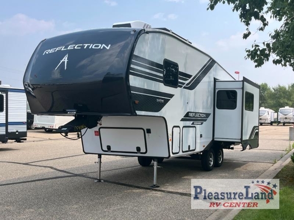 Each Reflection 100 Series fifth wheel by Grand Design is affordable and packed with luxury for unforgettable camping memories! The MorRyde CRE3000 suspension system and Goodyear Endurance tires will provide smooth towing from home to campground. And the solar package with a 180W solar panel, 60 Amp charge controller and 12V refrigerator will allow you to camp for longer periods of time and in more locations! A heated and enclosed underbelly with circulating heat is included in the Arctic 4-Seasons Protection Package, along with a double insulated roof and front cap, and thermofoil insulation under the holding tanks so you can camp all year long if you choose. You will appreciate having an on-demand water heater for hot showers after exploring, and the universal all-in-one docking station will let you monitor your RVs tanks levels and functions with ease. These models also include many luxurious interior features, such as premium Congoleum flooring, pleated shades, residential cabinetry, and matte black fixtures and hardware. Don't let the Reflection 100 Series fifth wheels pass you by!