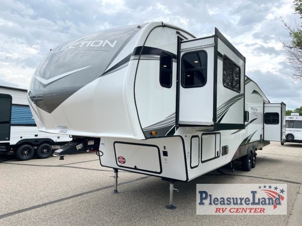 Each Reflection fifth wheel and travel trailer by Grand Design is packed with luxury features for an overall better camping experience! The MORryde 3000CRE suspension provides smooth towing to your destination and the durable construction materials mean you can enjoy your RV for years to come. These units include the Arctic 4-Seasons Protection Package that will extend your camping season thanks to the extreme temperature testing and maximum heating power. You will also appreciate the Solar Package that will allow you to do some off-grid camping and the Compass Connect system so you can control your RV's functions right from the palm of your hand. The interior of these travel trailers and fifth wheels are designed to make you feel at home with residential cabinetry, solid surface countertops, blackout roller shades, a spacious shower with a glass door, residential bedrooms, and the list goes on! Choose a Reflection today and start a new adventure tomorrow!
