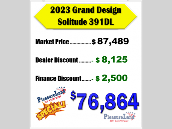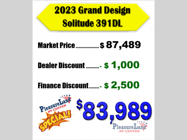 Each Solitude fifth wheel by Grand Design features a 101" wide-body construction, heavy duty 7,000 lb. axles, frameless tinted windows, and high-gloss gel coat sidewalls. You can camp year around thanks to the Weather-Tek Package that includes a 35K BTU high-capacity furnace, an all-in-one enclosed and heated utility center, and a fully enclosed underbelly with heated tanks and storage. Inside, you'll love the premium roller shades, hardwood cabinet doors, solid surface countertops and sinks, plus residential finishes throughout to make you truly feel at home. Each model also includes a MORryde CRE3000 suspension system, self adjusting brakes, and a MORryde pin box that will provide smooth towing from home to campground. Affordable luxury is possible with the Solitude fifth wheels; choose yours today!