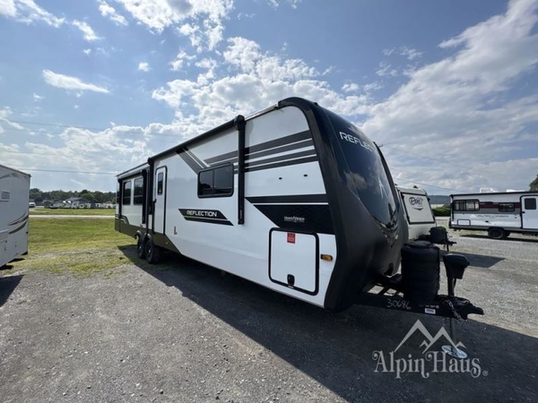 With any Reflection travel trailer by Grand Design, you will have a solar panel for off-grid camping and a 60 amp charge controller and inverter prep, a Universal All-In-One docking station, unobstructed pass-through storage, and Goodyear Endurance tires. Each is constructed of gel coat exterior sidewalls, residential 5" truss rafters, walk-on roof decking, a fiberglass and radiant foil roof and front cap insulation plus laminated aluminum framed side walls, roof and end walls in slide rooms. Head inside to enjoy residential hardwood cabinet doors, premium Congoleum flooring, a spacious shower with a glass door, and many more comforts!