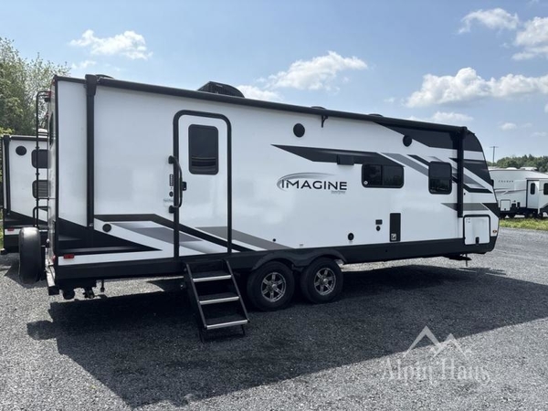 Just imagine leaving the world behind and secluding yourself away with your favorite people in your Grand Design Imagine travel trailer! The Imagine has been designed to enjoy extended season camping and includes a high-capacity furnace, a heated and enclosed underbelly with suspended tanks, a designated heat duct to the subfloor, and a high-density roof insulation with attic vent. You'll have maximum head room on the interior with 81" radius ceilings, and large panoramic windows to let in natural lighting. The exclusive drop-frame pass-through storage compartment is going to allow you to bring along lots of equipment, and the universal docking station is an all-in-one location for utilities and hook-ups. You'll also have industry-leading tank capacities so that you can fill and empty your tanks less often.