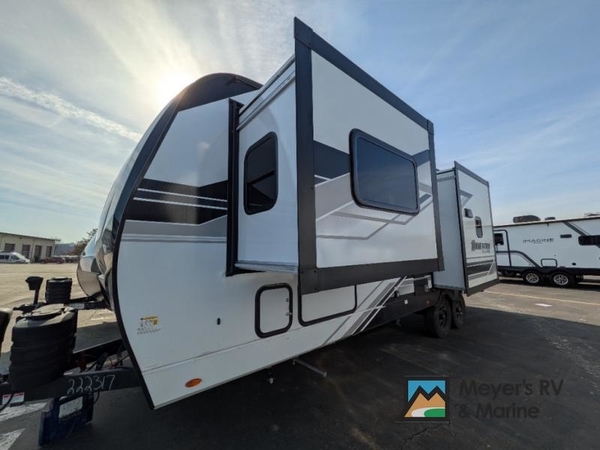 It's time to load up your family and off-road toys to enjoy the great outdoors at the speed you like with this Momentum G-Class toy hauler. Once at your destination, unload the toys from the 13' 6" of cargo space, put out the two slides, and start having fun. You can cook meals in the spacious kitchen area with extra counter space and relax in the Euro chairs or on the rollover sofas with a table. You can even cook at the outside kitchen underneath the 19' power awning.