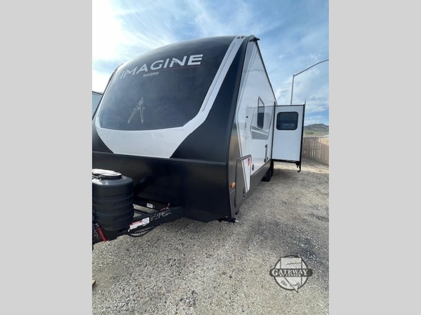 With this Imagine travel trailer, you can work while you're on the road because it offers you a desk in the main living area. You won't have to miss out on the action since you'll be right next to the booth dinette and tri-fold sofa, and there is even a pantry directly to the left of the desk for you to grab a quick snack while you're working. Once you're done with work, you can relax on the tri-fold sofa while you watch the telescoping LED HDTV, and the private bedroom offers you a 60" x 80" queen bed to rest on when you're ready to call it a night.