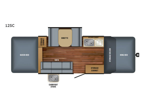 This Jay Sport camping trailer has everything you need for a successful adventure on the road. The king-sized and queen-sized tent end beds each hold a 1,050 pound capacity and keep out unwanted moisture because of the water-repellent DuraTek tent protecting them. This entire trailer is able to sleep seven people comfortably, which means that no one has to miss out on the fun times. If it seems like the tinted vinyl windows with fine-mesh screening won't keep the trailer fresh and airy during meal preparations, you can take the cooking outdoors to the carry-out stove.