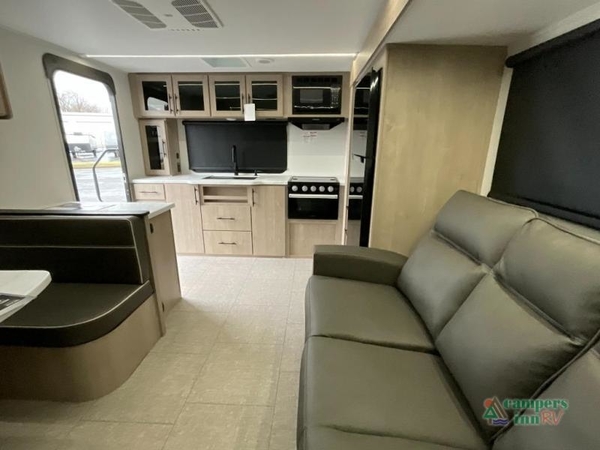 Step inside the Imagine XLS 23LDE and enjoy a well-designed layout that maximizes space and convenience. The private front bedroom features a walk-around queen bed, dual entry doors, and a private access point to the walk-through bathroom. The spacious slide-out opens up the living area, where the booth dinette doubles as additional sleeping space. Relax in the theater seating positioned directly across from the LED TV for the ultimate entertainment experience.