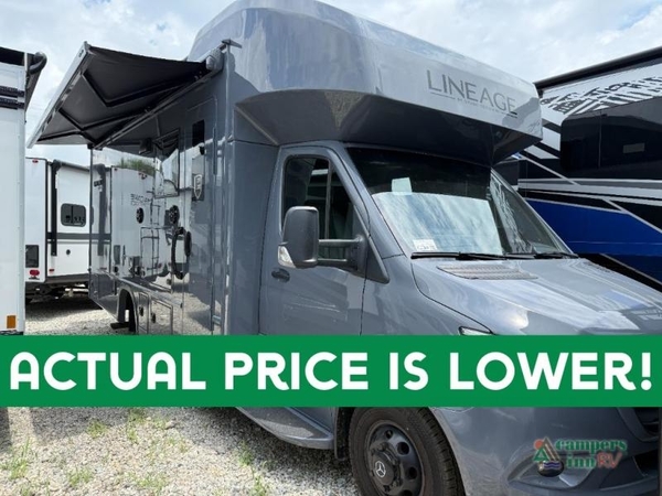 The Grand Design Lineage 25FW Class C diesel motorhome delivers a luxurious and stylish camping experience. With a king-size bed, full-wall slide, power theater seating, and high-end finishes throughout, this coach combines comfort and functionality. Complete with Midnight full body paint and the Lineage Blackout Package, its perfect for adventurers seeking both performance and premium style on the road.