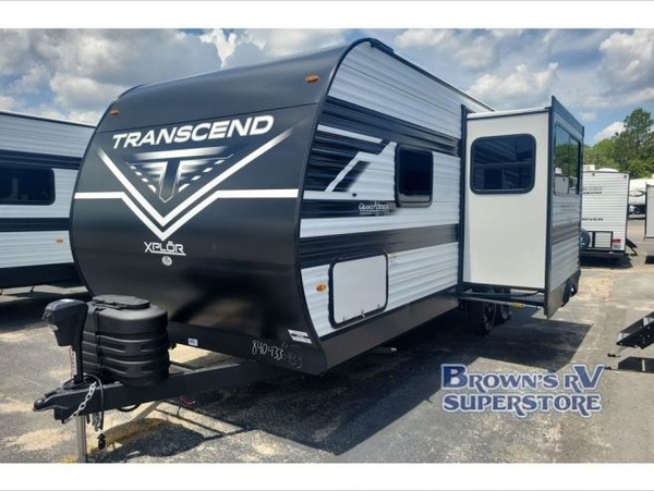 The customer-focused, quality-built Transcend Xplor travel trailers by Grand Design are your ticket to fun and adventure. You will appreciate the power tongue jack when it comes time to set up, as well as the all-in-one utility center and the detachable power cord with an LED light. These models include many outlets throughout, USB ports to charge your gadgets, and a JBL exterior speaker to listen to your favorite tunes. The interior of the Transcend Xplor will have you feeling right at home with upgraded residential furniture, residential countertops, residential cabinet doors, and the list goes on!