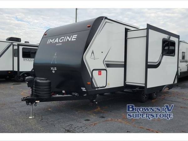 Let your imagination run wild with the possibilities that the Grand Design Imagine XLS travel trailer can provide! The Imagine XLS has been built with oversized tank capacities, an extra-large 2" fresh water drain valve, a ducted A/C system, a power tongue jack, and a heated and enclosed underbelly with suspended tanks. There is a designated heat duct to the subfloor and a residential ductless heating system throughout. For outdoor adventures, the electric awning with LED lights will enable you to stay protected, and the Tuff-Ply pass-thru flooring will withstand your many adventures. You will also love the XLS Solar Package that comes with a 200W roof mounted solar panel, a 40 Amp charge controller, a 12V 10 cu. ft. refrigerator, and roof mounted quick connect plugs!