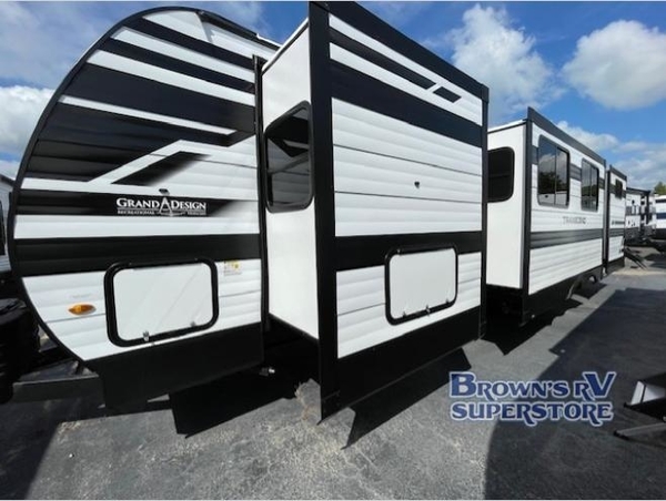 With any Transcend travel trailer by Grand Design, you will enjoy upscale appointments and convenient amenities to make each camping experience one to remember! The Quad Seal technology, residential insulated walls, plus heated and enclosed underbelly with suspended tanks make these units solid and durable. There is a black automotive glass door outside, along with a Safe-T-Rail assist on the main entry door, backup camera prep, and a universal docking station. JBL interior and exterior speakers plus a JBL head unit will let you listen to your favorite tunes as you visit under the power awning with LED strip lights. Inside, you'll enjoy multiple outlets to keep your gadgets charged, thermoformed and seamless countertops, and a 6' 6" interior height so you won't feel closed in. The Solar Prep Package will allow you to enjoy off-grid capabilities with a 200W solar panel, which is wired for up to 600W, a 30 AMP Bluetooth solar controller, a 2000W inverter prep, and more!