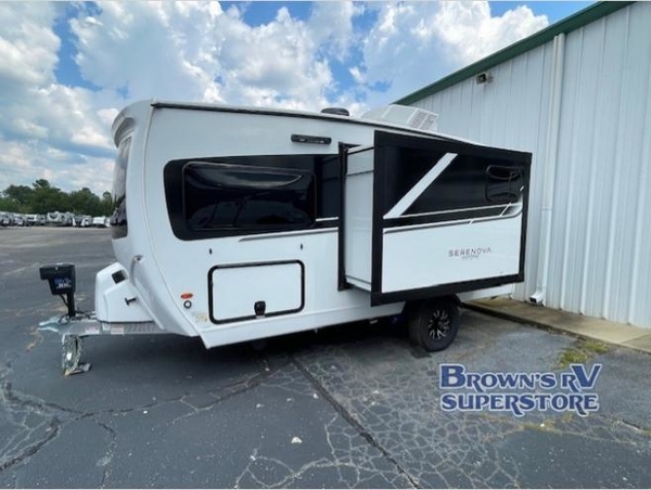 With any Serenova travel trailer by Grand Design, you will enjoy a smooth tow and at-home comforts wherever you decide to roam. There is a MORryde independent suspension plus MORryde shock, Goodyear Endurance tires, and Dexter tow assist with an anti-lock braking system and sway control for optimal handling. To help extend your camping season, there is an enclosed underbelly, a dedicated heat source with Thermafoil, heated dump valves plus thermostatically controlled 12V heating pads. Inside, you'll love the look of the imported Italian cabinetry, and there is a Klipsch whole home Bluetooth speaker so you can listen to your favorite tunes at the campground!