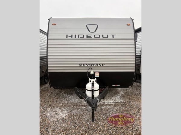 With any Hideout Mini travel trailer by Keystone, you will enjoy lightweight towing thanks to their single-axle! The AlphaPly TPO roof membrane is ultra durable, and the power awning will provide protection from the sun as you relax in your camp chairs outside. Each model includes blackout night shades, LED lighting, plus many more interior comforts. There is also a roof A/C and 20K BTU furnace to keep you comfortable, plus a tankless water heater for endless hot showers!