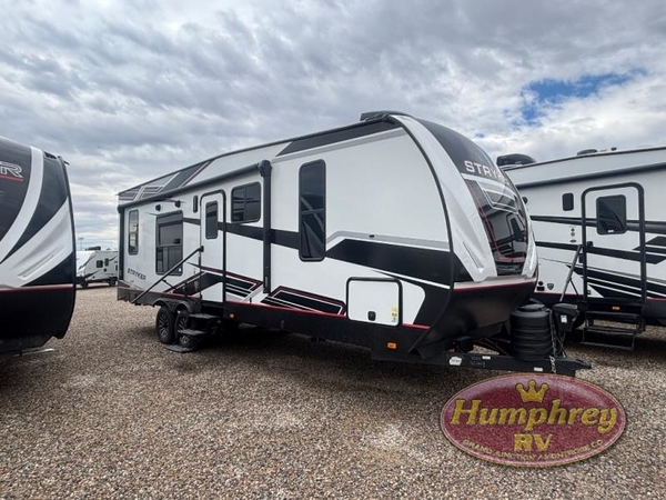 Each Stryker toy hauler travel trailer by Cruiser starts with a powder coated structural steel I-beam frame, Azdel composite laminated sidewalls, and a 102" wide body, perfect for your side-by-side, dirt bikes, or kayaks! The EZ flex rubberized suspension provides smooth towing on tougher roads, and the painted molded fiberglass front cap not only looks sleek, but provides better protection. Inside, you'll find barreled ceilings up to 98" in height, solid surface kitchen cabinets, and numerous USB ports and 110V outlets. There's so much more to love about the Stryker toy haulers, like the premium sound system, large windows, tons of storage space, and the list goes on!