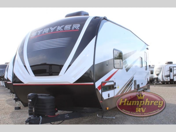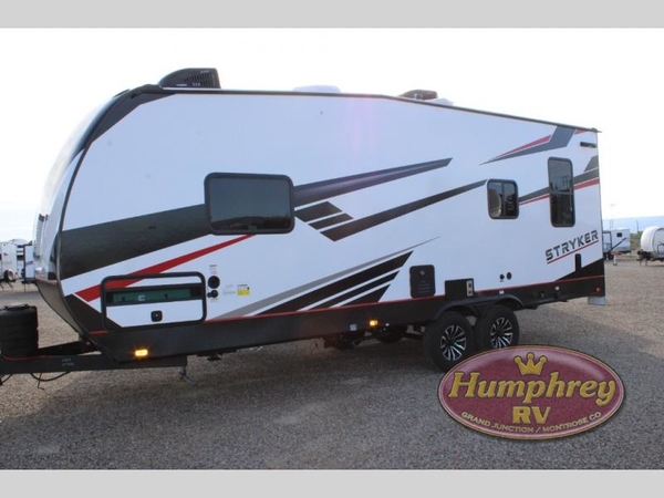 Each Stryker toy hauler travel trailer by Cruiser starts with a powder coated structural steel I-beam frame, Azdel composite laminated sidewalls, and a 102" wide body, perfect for your side-by-side, dirt bikes, or kayaks! The EZ flex rubberized suspension provides smooth towing on tougher roads, and the painted molded fiberglass front cap not only looks sleek, but provides better protection. Inside, you'll find barreled ceilings up to 98" in height, solid surface kitchen cabinets, and numerous USB ports and 110V outlets. There's so much more to love about the Stryker toy haulers, like the premium sound system, large windows, tons of storage space, and the list goes on!