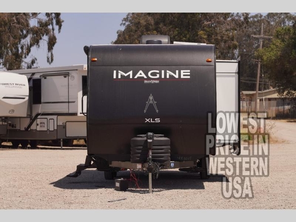 Let your imagination run wild with the possibilities that the Grand Design Imagine XLS travel trailer can provide! The Imagine XLS has been built with oversized tank capacities, an extra-large 2" fresh water drain valve, a ducted A/C system, a power tongue jack, and a heated and enclosed underbelly with suspended tanks. There is a designated heat duct to the subfloor and a residential ductless heating system throughout. For outdoor adventures, the electric awning with LED lights will enable you to stay protected, and the Tuff-Ply pass-thru flooring will withstand your many adventures. You will also love the XLS Solar Package that comes with a 180W roof mounted solar panel, a 40 Amp charge controller, a 12V 10 cu. ft. refrigerator, and roof mounted quick connect plugs!