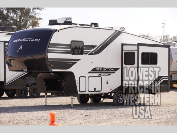 Each Reflection 100 Series fifth wheel by Grand Design is affordable and packed with luxury for unforgettable camping memories! The MorRyde CRE3000 suspension system and Goodyear Endurance tires will provide smooth towing from home to campground. And the solar package with a 180W solar panel, 60 Amp charge controller and 12V refrigerator will allow you to camp for longer periods of time and in more locations! A heated and enclosed underbelly with circulating heat is included in the Arctic 4-Seasons Protection Package, along with a double insulated roof and front cap, and thermofoil insulation under the holding tanks so you can camp all year long if you choose. You will appreciate having an on-demand water heater for hot showers after exploring, and the universal all-in-one docking station will let you monitor your RVs tanks levels and functions with ease. These models also include many luxurious interior features, such as premium Congoleum flooring, pleated shades, residential cabinetry, and matte black fixtures and hardware. Don't let the Reflection 100 Series fifth wheels pass you by!