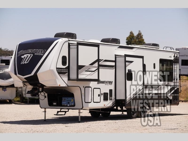Are you looking for adventure and fun? The Momentum G-Class toy hauler by Grand Design will help you find it! You can explore during any season you choose with the Insulation Package that includes a heated and enclosed underbelly with suspended tanks, a high-capacity furnace, a moisture barrier floor enclosure, and cabinet-mounted heat ducts. Each model includes a fuel station with an interior and exterior gauge, a dovetail rear rend, and 2,500-LB tie-downs anchored into the chassis. Throughout the Momentum G-Class interior, you'll enjoy many comfortable features like large panoramic windows, a shower skylight, USB chargers in the bedroom, and residential cabinetry.