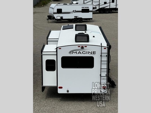 Just imagine leaving the world behind and secluding yourself away with your favorite people in your Grand Design Imagine travel trailer! The Imagine has been designed to enjoy extended season camping and includes a high-capacity furnace, a heated and enclosed underbelly with suspended tanks, a designated heat duct to the subfloor, and a high-density roof insulation with attic vent. You'll have maximum headroom with radius interior ceilings, and large panoramic windows to let in natural lighting. The exclusive drop-frame pass-through storage compartment is going to allow you to bring along lots of equipment, and the universal docking station is an all-in-one location for utilities and hook-ups. You'll also have industry-leading tank capacities so that you can fill and empty your tanks less often.