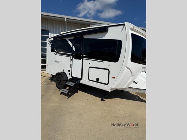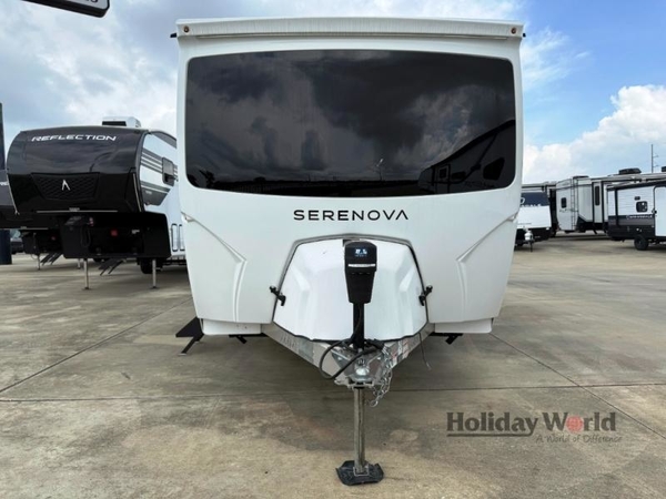With any Serenova travel trailer by Grand Design, you will enjoy a smooth tow and at-home comforts wherever you decide to roam. There is a MORryde independent suspension plus MORryde shock, Goodyear Endurance tires, and Dexter tow assist with an anti-lock braking system and sway control for optimal handling. To help extend your camping season, there is an enclosed underbelly, a dedicated heat source with Thermafoil, heated dump valves plus thermostatically controlled 12V heating pads. Inside, you'll love the look of the imported Italian cabinetry, and there is a Klipsch whole home Bluetooth speaker so you can listen to your favorite tunes at the campground!