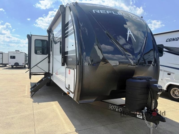 With any Reflection travel trailer by Grand Design, you will have a solar panel for off-grid camping and a 60 amp charge controller and inverter prep, a Universal All-In-One docking station, unobstructed pass-through storage, and Goodyear Endurance tires. Each is constructed of gel coat exterior sidewalls, residential 5" truss rafters, walk-on roof decking, a fiberglass and radiant foil roof and front cap insulation plus laminated aluminum framed side walls, roof and end walls in slide rooms. Head inside to enjoy residential hardwood cabinet doors, premium Congoleum flooring, a spacious shower with a glass door, and many more comforts!