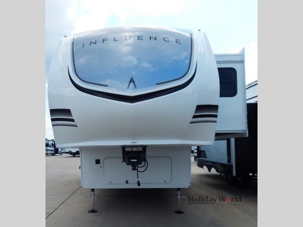 Any Grand Design Influence fifth wheel features five-sided aluminum cage construction with a walk-on roof and a fully enclosed underbelly with heated tanks and storage for all weather camping. For peace of mind, the MORryde CRE3000 Suspension system will provide safe and smooth towing, and the 101" widebody construction offers all the room you need and that is before multiple slides are fully engaged. You will appreciate the Keyed-Alike locks, slam-latch baggage doors with magnetic door catches, exterior security light, and SolidStep entry steps. On the inside, Congoleum flooring, premium roller shades for privacy, a hallway handrail for safety, and nightstands with USB ports to keep all of your electronics fully charged. You will also love the On Demand tankless water heater when showering, plus the added heat and ambiance from an electric fireplace, and so much more!