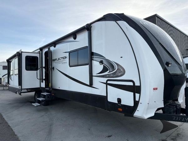 With any Reflection travel trailers by Grand Design, you will have a 165W solar panel for off-grid camping and a 50 Amp charge controller and inverter prep, a Universal All-In-One Docking Station, unobstructed pass-through storage, and Goodyear Endurance tires. Some other top features include the 30" stainless steel microwave, the maximum 7-foot headroom, and the ductless "Evenflow" heating system with no vents in the floor to collect debris. Each is constructed of gel coat exterior sidewalls, residential 5" truss rafters, walk-on roof decking, a fiberglass and radiant foil roof and front cap insulation plus laminated aluminum framed side walls, roof and end walls in slide rooms. Choose luxury, value and towability over all the others, take home a Reflection of your good taste!