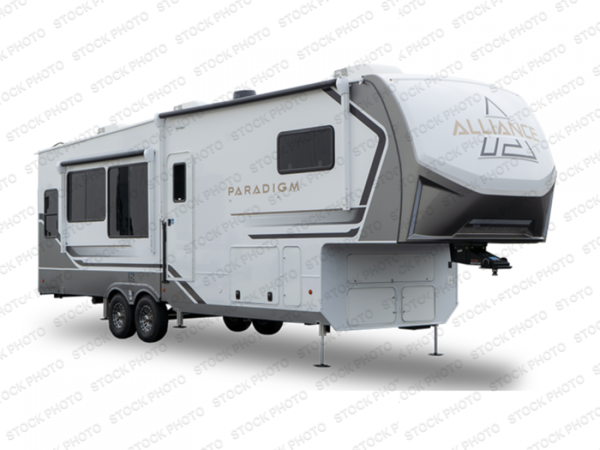 The Paradigm fifth wheels by Alliance RV are functional, high-quality, and luxurious for an unforgettable camping experience. There are three A/C units and a 40K BTU furnace to keep you comfortable year around, and you'll appreciate additional convenient amenities, like the all-in-one enclosed/heated utility center and the color coded and numbered wiring. A Helux Series coil spring pin box comes standard for hassle-free towing, along with Super-G 4,400 lb. rated tires and Dexter 7,000 lb. axles. You'll love the kitchen with its LG solid surface countertops and Lusso range, plus there is LED motion lighting in the pantry and a Maxx fan with a rain sensor to keep everything fresh when making dinner. Each model also includes an HD Smart TV in the living room and bedroom, plus a Winegard Air 360 antenna to keep you connected to the outside world. And of course there are a variety of options you can choose from to further customize your fifth wheel; dual pane windows, Super Solar Plus, slide out awning toppers, and generator prep or a generator to name a few!