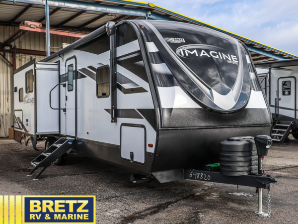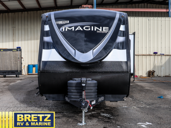Just imagine leaving the world behind and secluding yourself away with your favorite people in your Grand Design Imagine travel trailer! The Imagine has been designed to enjoy extended season camping and includes a high-capacity furnace, a heated and enclosed underbelly with suspended tanks, a designated heat duct to the subfloor, and a high-density roof insulation with attic vent. You'll have maximum head room on the interior with 81" radius ceilings, and large panoramic windows to let in natural lighting. The exclusive drop-frame pass-through storage compartment is going to allow you to bring along lots of equipment, and the universal docking station is an all-in-one location for utilities and hook-ups. You'll also have industry-leading tank capacities so that you can fill and empty your tanks less often.