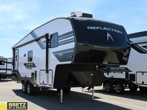 Each Reflection 100 Series fifth wheel by Grand Design is affordable and packed with luxury for unforgettable camping memories! The MorRyde CRE3000 suspension system and Goodyear Endurance tires will provide smooth towing from home to campground. And the solar package with a 180W solar panel, 60 Amp charge controller and 12V refrigerator will allow you to camp for longer periods of time and in more locations! A heated and enclosed underbelly with circulating heat is included in the Arctic 4-Seasons Protection Package, along with a double insulated roof and front cap, and thermofoil insulation under the holding tanks so you can camp all year long if you choose. You will appreciate having an on-demand water heater for hot showers after exploring, and the universal all-in-one docking station will let you monitor your RVs tanks levels and functions with ease. These models also include many luxurious interior features, such as premium Congoleum flooring, pleated shades, residential cabinetry, and matte black fixtures and hardware. Don't let the Reflection 100 Series fifth wheels pass you by!