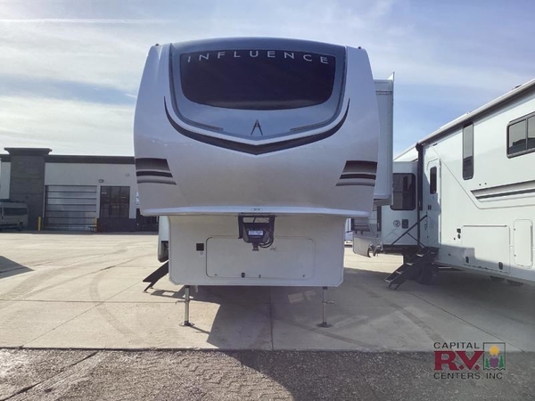 Any Grand Design Influence fifth wheel features five-sided aluminum cage construction with a walk-on roof and a fully enclosed underbelly with heated tanks and storage for all weather camping. For peace of mind, the MORryde CRE3000 Suspension system will provide safe and smooth towing, and the 101" widebody construction offers all the room you need and that is before multiple slides are fully engaged. You will appreciate the Keyed-Alike locks, slam-latch baggage doors with magnetic door catches, exterior security light, and SolidStep entry steps. On the inside, Congoleum flooring, premium roller shades for privacy, a hallway handrail for safety, and nightstands with USB ports to keep all of your electronics fully charged. You will also love the On Demand tankless water heater when showering, plus the added heat and ambiance from an electric fireplace, and so much more!