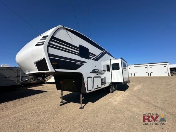 Each Reflection 100 Series fifth wheel by Grand Design is affordable and packed with luxury for unforgettable camping memories! The MorRyde CRE3000 suspension system and Goodyear Endurance tires will provide smooth towing from home to campground. And the solar package with a 180W solar panel, 60 Amp charge controller and 12V refrigerator will allow you to camp for longer periods of time and in more locations! A heated and enclosed underbelly with circulating heat is included in the Arctic 4-Seasons Protection Package, along with a double insulated roof and front cap, and thermofoil insulation under the holding tanks so you can camp all year long if you choose. You will appreciate having an on-demand water heater for hot showers after exploring, and the universal all-in-one docking station will let you monitor your RVs tanks levels and functions with ease. These models also include many luxurious interior features, such as premium Congoleum flooring, pleated shades, residential cabinetry, and matte black fixtures and hardware. Don't let the Reflection 100 Series fifth wheels pass you by!