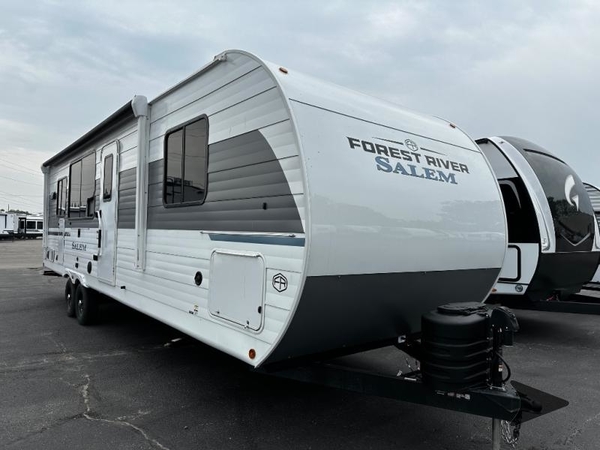 The Salem travel trailers are packed with hassle-free camping amenities! There are a variety of floorplans to choose from between three different regions. The heated and enclosed Accessibelly will help protect against the elements and debris during transport, and the exterior retro/metal redesign is sure to be eye-catching! There are stylish roller shades inside, along with updated backsplash, elegant curtain rods and curtains, plus many more interior comforts! Choose a Salem travel trailer today for quality and value!
