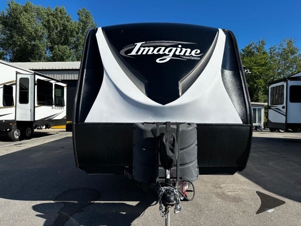 With any Imagine by Grand Design the construction includes a laminated aluminum framed main floor, rear wall, side walls, roof and end walls in the slide rooms and floors, plus a one-piece roof membrane giving you years of lightweight towing to your favorite destinations. Best in class storage is found in the exclusive drop frame unobstructed pass through storage, and the Universal Docking station offers an all-in-one location for utilities and hookups, plus you will find industry leading tank capacities and extended season camping with the mandatory four-season protection package. Inside you will experience residential cabinetry and a pull-down sprayer kitchen faucet, upgraded residential furniture and countertops, plus much more with an 81" radius ceiling for a spacious interior. Choose your favorite Imagine today, and start adventuring in a lightweight and comfortable trailer!