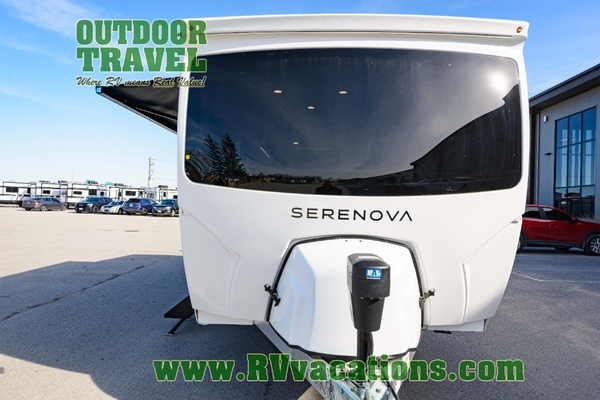 With any Serenova travel trailer by Grand Design, you will enjoy a smooth tow and at-home comforts wherever you decide to roam. There is a MORryde independent suspension plus MORryde shock, Goodyear Endurance tires, and Dexter tow assist with an anti-lock braking system and sway control for optimal handling. To help extend your camping season, there is an enclosed underbelly, a dedicated heat source with Thermafoil, heated dump valves plus thermostatically controlled 12V heating pads. Inside, you'll love the look of the imported Italian cabinetry, and there is a Klipsch whole home Bluetooth speaker so you can listen to your favorite tunes at the campground!