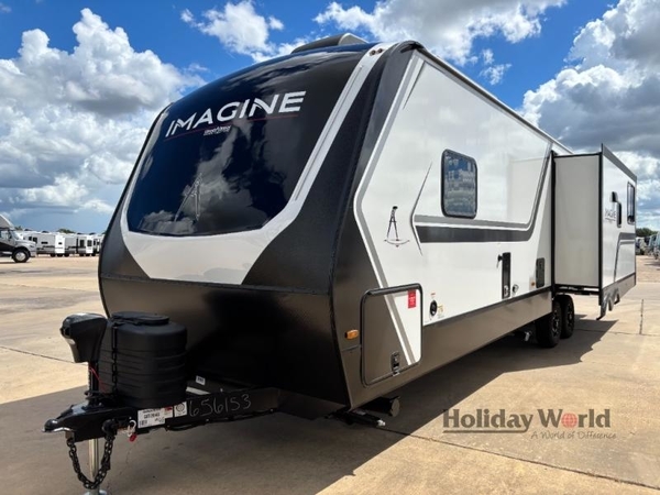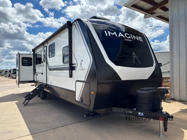 Just imagine leaving the world behind and secluding yourself away with your favorite people in your Grand Design Imagine travel trailer! The Imagine has been designed to enjoy extended season camping and includes a high-capacity furnace, a heated and enclosed underbelly with suspended tanks, a designated heat duct to the subfloor, and a high-density roof insulation with attic vent. You'll have maximum head room on the interior with 81" radius ceilings, and large panoramic windows to let in natural lighting. The exclusive drop-frame pass-through storage compartment is going to allow you to bring along lots of equipment, and the universal docking station is an all-in-one location for utilities and hook-ups. You'll also have oversized tank capacities so that you can fill and empty your tanks less often.