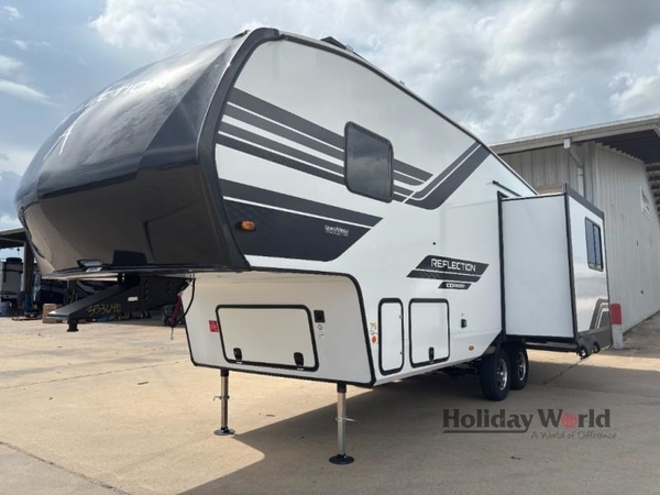 Each Reflection 100 Series fifth wheel by Grand Design is affordable and packed with luxury for unforgettable camping memories! The MorRyde CRE3000 suspension system and Goodyear Endurance tires will provide smooth towing from home to campground. And the solar package with a 180W solar panel, 60 Amp charge controller and 12V refrigerator will allow you to camp for longer periods of time and in more locations! A heated and enclosed underbelly with circulating heat is included in the Arctic 4-Seasons Protection Package, along with a double insulated roof and front cap, and thermofoil insulation under the holding tanks so you can camp all year long if you choose. You will appreciate having an on-demand water heater for hot showers after exploring, and the universal all-in-one docking station will let you monitor your RVs tanks levels and functions with ease. These models also include many luxurious interior features, such as premium Congoleum flooring, pleated shades, residential cabinetry, and matte black fixtures and hardware. Don't let the Reflection 100 Series fifth wheels pass you by!