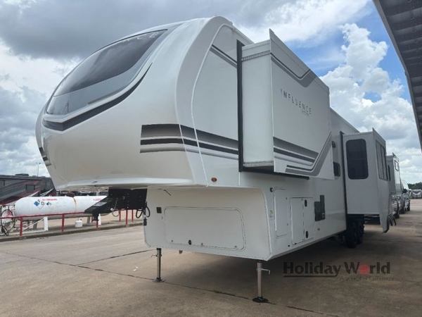 Any Grand Design Influence fifth wheel features five-sided aluminum cage construction with a walk-on roof and a fully enclosed underbelly with heated tanks and storage for all weather camping. For peace of mind, the MORryde CRE3000 Suspension system will provide safe and smooth towing, and the 101" widebody construction offers all the room you need and that is before multiple slides are fully engaged. You will appreciate the Keyed-Alike locks, slam-latch baggage doors with magnetic door catches, exterior security light, and SolidStep entry steps. On the inside, Congoleum flooring, premium roller shades for privacy, a hallway handrail for safety, and nightstands with USB ports to keep all of your electronics fully charged. You will also love the On Demand tankless water heater when showering, plus the added heat and ambiance from an electric fireplace, and so much more!
