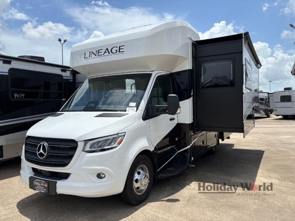 Grand Design's first motorized coach, the Lineage Series M is coming to you with luxurious features at a great value. This Class C diesel motorhome sits on a Mercedes-Benz sprinter chassis for quality and performance you can trust. True to Grand Design's foundation, the Lineage includes interior comforts, durable construction, innovative features, and attention to detail. The Series M Package includes natural teak wood grain, a Lineage Suspension Package, and more. There is also a Blackout Package with black aluminum wheels, a Chromeout Package with chrome aluminum wheels, plus additional packages to enhance your travel experience!